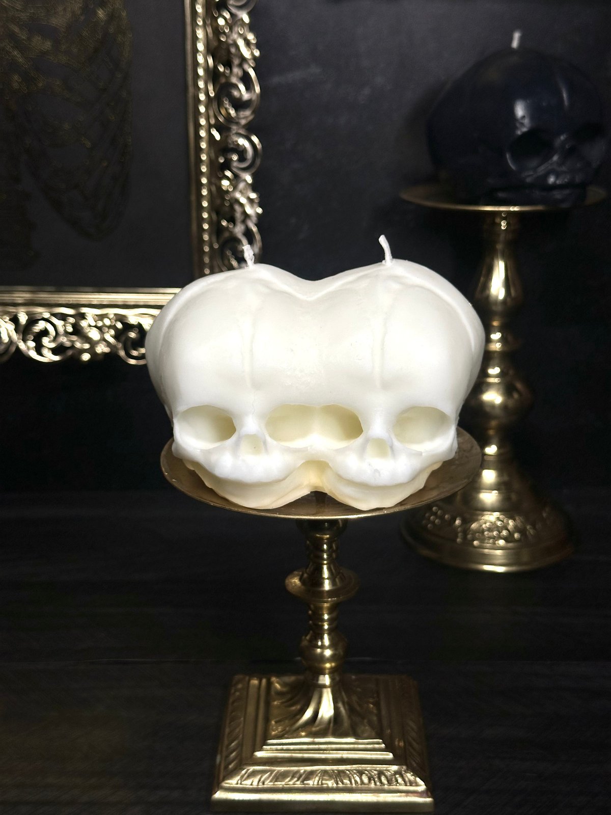 This candle features a double fetal skull design, perfect for any oddity collector or medical enthusiast