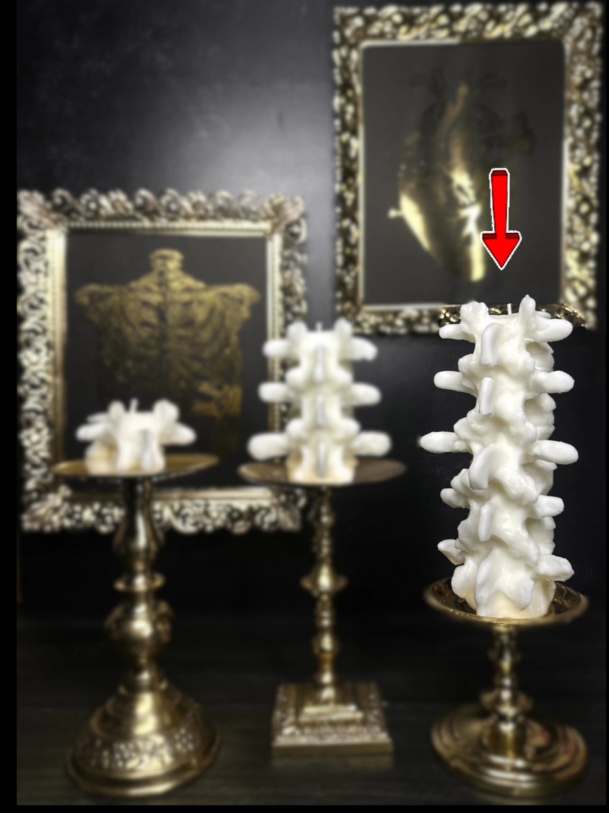 Anatomically accurate spine, complete with a realistic vertebral column and intervertebral discs. This candle is perfect tor anatomy enthusiasts, healthcare professionals, and lovers of unique home decor.
